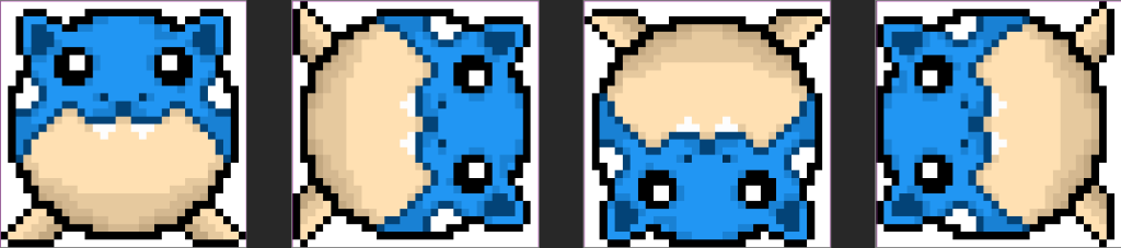 I think there are a few improvements I would make like increasing the detail of rowlet as I made it a lot simpler than I made spheal and that created a bit of style dissonance. I would also make the animations more than just 90 degree rotations. I would also try to proportion the player differently as even tho it has pretty much the same proportions and angle as the old sprites it still doesnt look right.