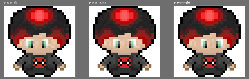 I tried to make the player into the chibi style of the pokemon character sprites when they were 2D but it didnt translate fantastically to 32×32 as the original sprites tended to be roughly 24×24 and I ended up having the head be massively oversized.