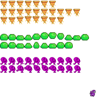 This week we covered the first half of the 12 principles of animation and were tasked to make a sprite sheet consisting of a player with a walk, idle, and jump animation, and 2 enemies with walk and attack animations, that implemented them.